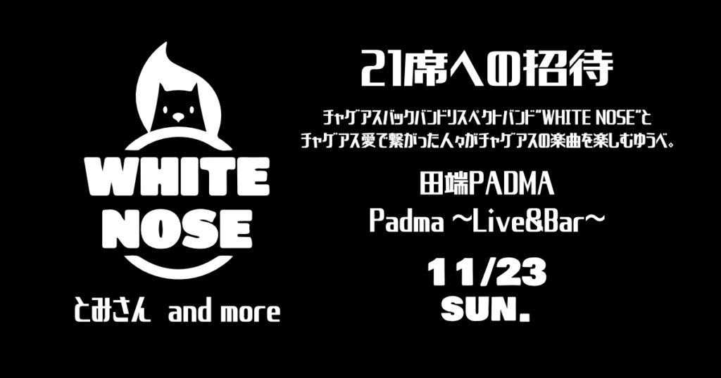 チャゲアスバックバンドリスペクトバンド”WHITE NOSE”とチャゲアス愛で繋がった人々がチャゲアスの楽曲を楽しむゆうべ。